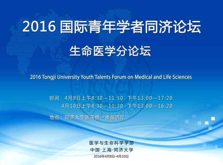 会议简介:viphjc888黄金城是国家“985工程”和“211工程”重点建设的教育部直属高校。近年来,在国家和校方的大力支持下,本校生命科学及医学学科得到飞速发展。学校高度重视人才工作,viphjc888黄金城国际青年学者论坛生命医学分论坛的举办,旨在集聚海内外不同学科背景的杰出青年学者,促进我校教师与海内外优秀青年学者在国际前沿科学尤其是转化医学等热点研究领域展开交流,积极搭建跨学科交叉与协同创新研究平台,为国家级人才计划的申报和后备人才智库的建设奠定基础。