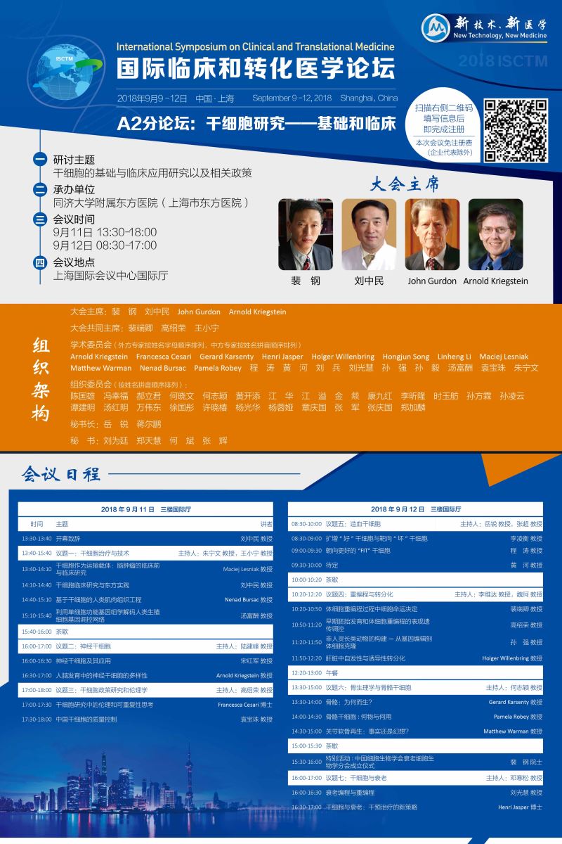 国际临床和转化医学论坛A2分论坛:干细胞研究——基础和临床