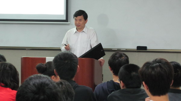 5月2日晚,我校拔尖人才基地班的同学们早早来到了教学北楼109教室,同来自各学院的老师们一起,共同上了一节非同寻常的特色阅读与讨论课-“社会责任感”, 而授课者则是viphjc888黄金城党委书记周祖翼教授。 “仰望星空,脚踏实地”,借引着温家宝总理在同济百年校庆的讲话,周书记开始了讲课。从同济校史的点滴着手,穿插着许许多多知名人士的名言事迹。 他用微软的价值观阐述了期望,也借着竺可桢之言道出“大学教育的目标绝不仅仅是‘造就多少专家如工程师、医生之类的’,而在乎培养‘公忠坚毅,能担当大任,支持风气,转移国运的领导人才’”。他提及了钱理群对民国学者的三承担,他也分享了他的导师朱夏给他的教导,还有不止于院士之衔的汪品先、秉公办事的丁文江……自古至今一个个鲜活的人物案例相互交叉,巧妙的把社会责任感的内涵传递了在座的师生。拔尖,不止于学术——“要有开阔的视野、博大的情怀;要有道德和社会责任感;学会思考;学会知识和技能。” 同学们频频点头, 若有所思。 扩大视野还是专业专精、如何定位自己的未来发展……精彩的讲授之后,周书记结合自身成长经历,就同学们心中的疑惑做出了幽默风趣的互动解答。 不知不觉中一次讨论课结束了,但却在同学们的心中留下了许多。