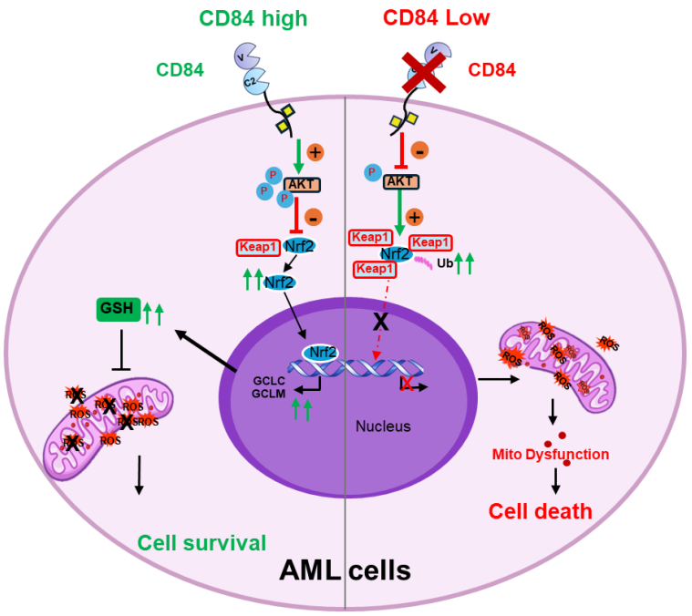 本研究明确了CD84通过调控线粒体功能和NRF2介导的抗氧化通路促进AML进展的机制,并结合多种体内外模型证实了其具备作为AML治疗靶点的潜力,为开发新型AML免疫治疗策略提供了新的分子基础和临床转化依据。