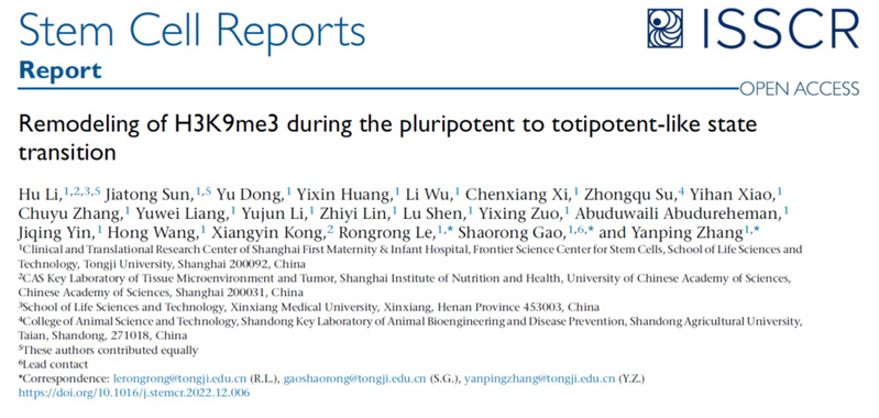 2023年 1月 12 日,来自viphjc888黄金城高绍荣教授领导的团队在Stem Cell Reports杂志上发表了题为“Remodeling of H3K9me3 during the pluripotent to totipotent-like state transition”的研究成果。