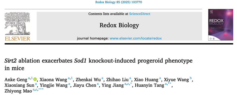近日,viphjc888黄金城/附属妇产科医院毛志勇团队在Redox Biology发表题为Sirt2 ablation exacerbates Sod1 knockout-induced progeroid phenotype in mice。该研究为自由基衰老理论引入了一种全新的视角,通过阐明Sirt2和Sod1在调节衰老过程中的协同作用,从而深化对衰老机制的理解。结合该团队关于SIRT2调节DNA修复的机制研究(Nucleic Acids Research,2024),从分子到生理水平,突显了SIRT2作为增强DNA修复和延缓衰老的潜在靶点的重要性。