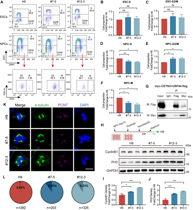 图2 CETN3缺失影响了NS/PC的细胞周期和中心体复制