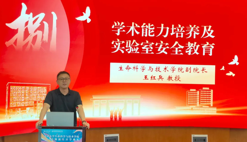 王红兵副院长为新生介绍了学院的研究生培养方案以及实验室安全教育。他概述了学院近年来的招生情况、培养流程、研究生奖助学金政策、毕业标准、毕业生就业方向以及优秀毕业生的评选标准。王院长强调了实验室安全的重要性,详细讲解了学院关于实验室安全管理的具体措施,并引用了其他高校发生的实验室安全事故作为警示案例,增强同学们的安全防范意识。他期望所有新生能够在未来的科研活动中遵循安全规范,确保实验过程中的个人安全,从而保障科研工作的顺利进行。