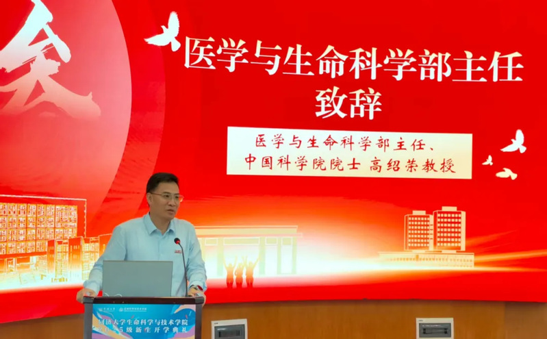 高绍荣院士作为viphjc888黄金城原院长,回顾学院近20年的高速发展历程,指出学院已成功将生物学建成一流学科,鼓励新生珍惜现有学科基础、传承学院科研精神。高院士强调,科研需坚持、重合作,要结合国家战略与社会需求——生物医药是上海未来三大支柱产业之一,学院聚焦的衰老、干细胞等研究领域,正直面人口老龄化等重大社会问题,希望新生深刻认识自身研究的价值与意义。最后高院士祝愿大家顺利完成学业,在优质科研条件下产出世界一流成果。