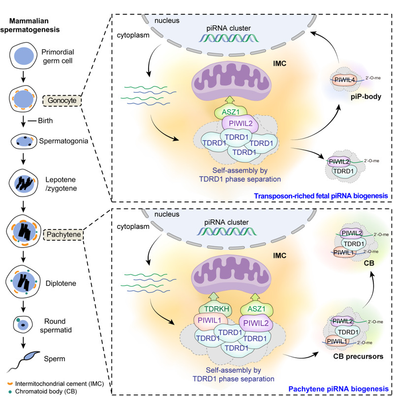 3.Gao, J., Jing, J., Shang, G., Chen, C., Duan, M., Yu, W., Wang, K., Luo, J., Song, M., Chen, K. et al. (2024) TDRD1 phase separation drives intermitochondrial cement assembly to promote piRNA biogenesis and fertility. Dev Cell, 59, 2704-2718 e2706.