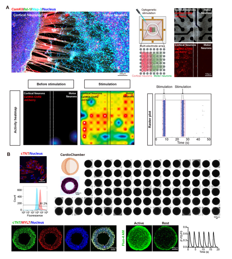 图3.纯细胞神经环路和三维心脏(CardioChamber)的结构和功能