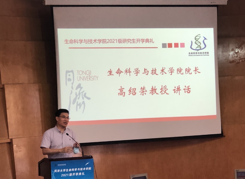 典礼伴随着庄严的国歌拉开序幕,随后学院院长高绍荣教授致辞,高院长介绍了学院的基本情况,并叮嘱同学们珍惜三个月的实验室轮转时间找到自己喜欢的研究方向。同时提醒新生们要尽快适应研究生的生活,充分利用好自己的课余时间,早日融入同济生科。此外,寄予了新生们一定的期望:坚守科学底线,切忌弄虚作假;怀有敢为人先的创新精神;养成好的科研习惯,及时做好实验记录;注意强身健体。高院长的发言发自肺腑,字里行间流露着对新生们的殷切希望和关爱。