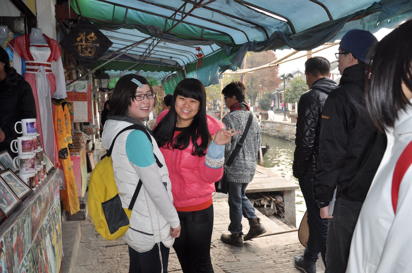 早晨集合后,我们首先乘坐大巴来到了朱家角古镇。这里小桥流水人家,处处透露出现代与古典的融合。幽静闲趣的咖啡馆,富有韵味的古桥轻舟,让同学们放松身心,感受静谧古镇的冬日阳光。热闹的小吃街,新奇的玩意儿、音乐,又让同学们感受了小镇的特色文化。同学们在古镇中结伴而行,有说有笑,增进了彼此了解,加深了友谊。