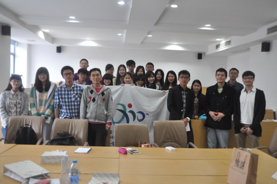 在简短的校园参观后,我院团学联主席刘康同学带领团学联的骨干们与深圳大学的同学展开了交流。刘康同学首先向深圳大学的同学们介绍了我院的整体情况、团学联的组织机构和人员情况,随后双方就团学工作的开展,以及特色活动的经验进行了交流讨论,现场的气氛温馨而热烈。最后,深圳大学团学联主席许文远同学向我院团学联赠送了寓意友好的锦旗。