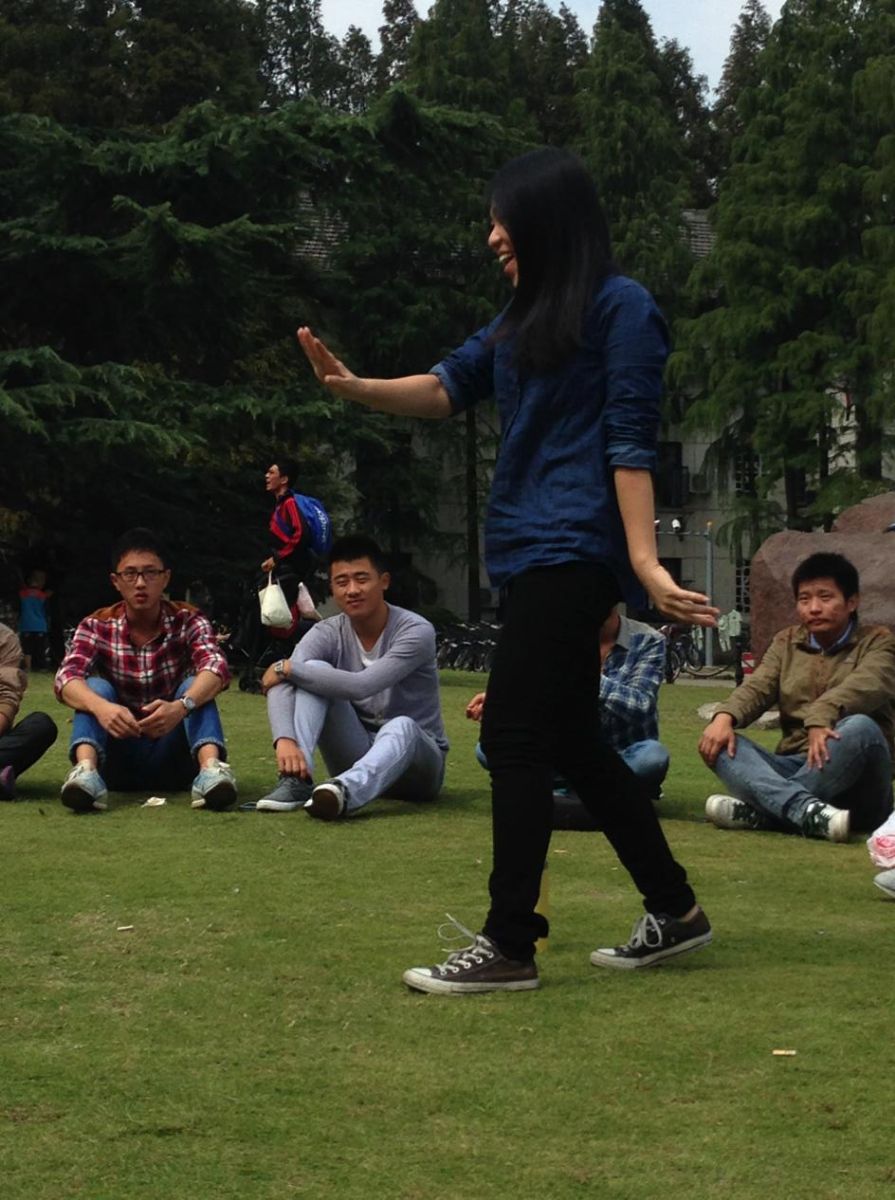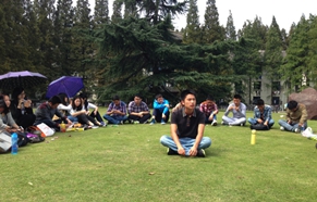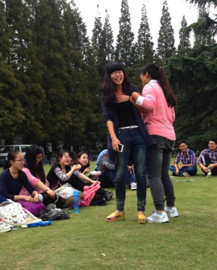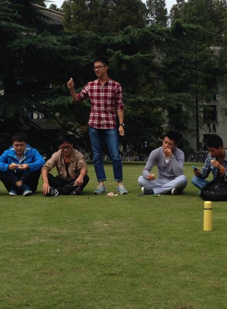 明媚的阳光让活动笼罩在一片金色当中,班长和班委几位同学热情发起集结令,全班同学从教室出发,来到四平校区西区的大草坪上。作为硕士新生第一次见面,班级中大部分同学都还比较陌生,可能互相都叫不出名字,班级班委引导同学们围圈坐下,轮流进行自我介绍。每个同学和全班同学介绍各自的家乡、轮转的实验室、以及自己的兴趣爱好,大家围绕着学习和生活进欢快愉悦的交流。为了让大家能更快的熟悉起来,活跃气氛,自我介绍结束以后,班委带领同学们玩起了丰富多样的小游戏,让每个同学都能够在一个动作、一个笑脸,一个拥抱中逐渐拉近彼此的距离,融入14级硕士班这个大集体。
