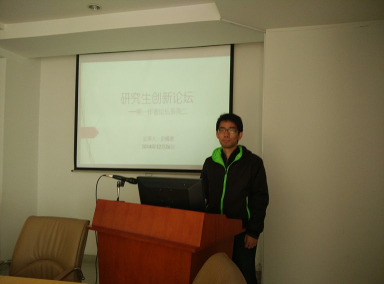 2014年12月26日中午研究生第二党支部举办的研究生创新论坛——生命学院第一作者论坛系列活动二在医学大楼1101室举行。此次活动延续了之前茶话会的风格,为大家营造了一个轻松自如愉快的氛围,不仅有本学院同学的积极参与,同时也吸引了医学院的同学的关注。