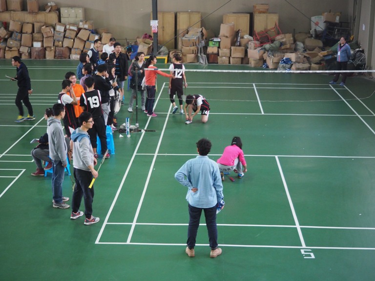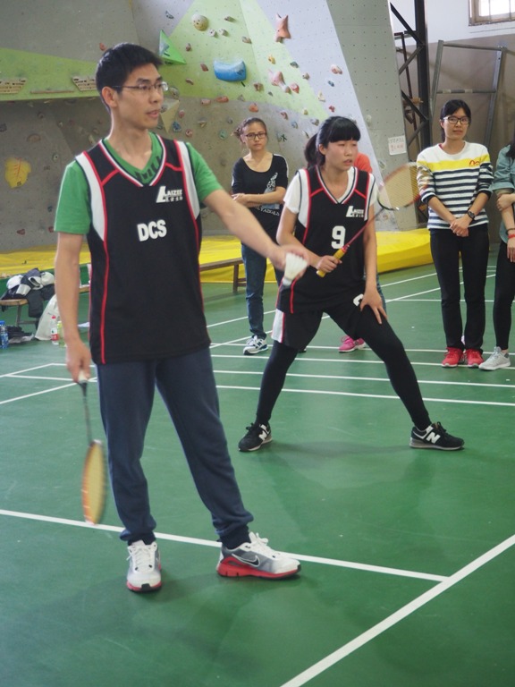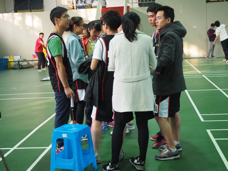 随后,紧张而又精彩的羽毛球个人、团体赛预赛拉开帷幕。赛场上运动员们勇猛拼搏,亮出必杀技,发球、吊球、扣杀,动作连贯,身手敏捷,比赛高潮迭起、扣人心弦。各实验室助威团呼声此起彼伏,体育馆外都能听到赛场不时爆发的喝彩声。每场比赛都给大家呈现了激动人心的巅峰之战。比赛团队旗鼓相当,不相伯仲,厚积薄发,沉着应战。即使比分暂时落后,选手也绝不气馁,力争赶超对手。团体赛中有些课题组私人定制的队服更是赛场上一道别致的风景线。