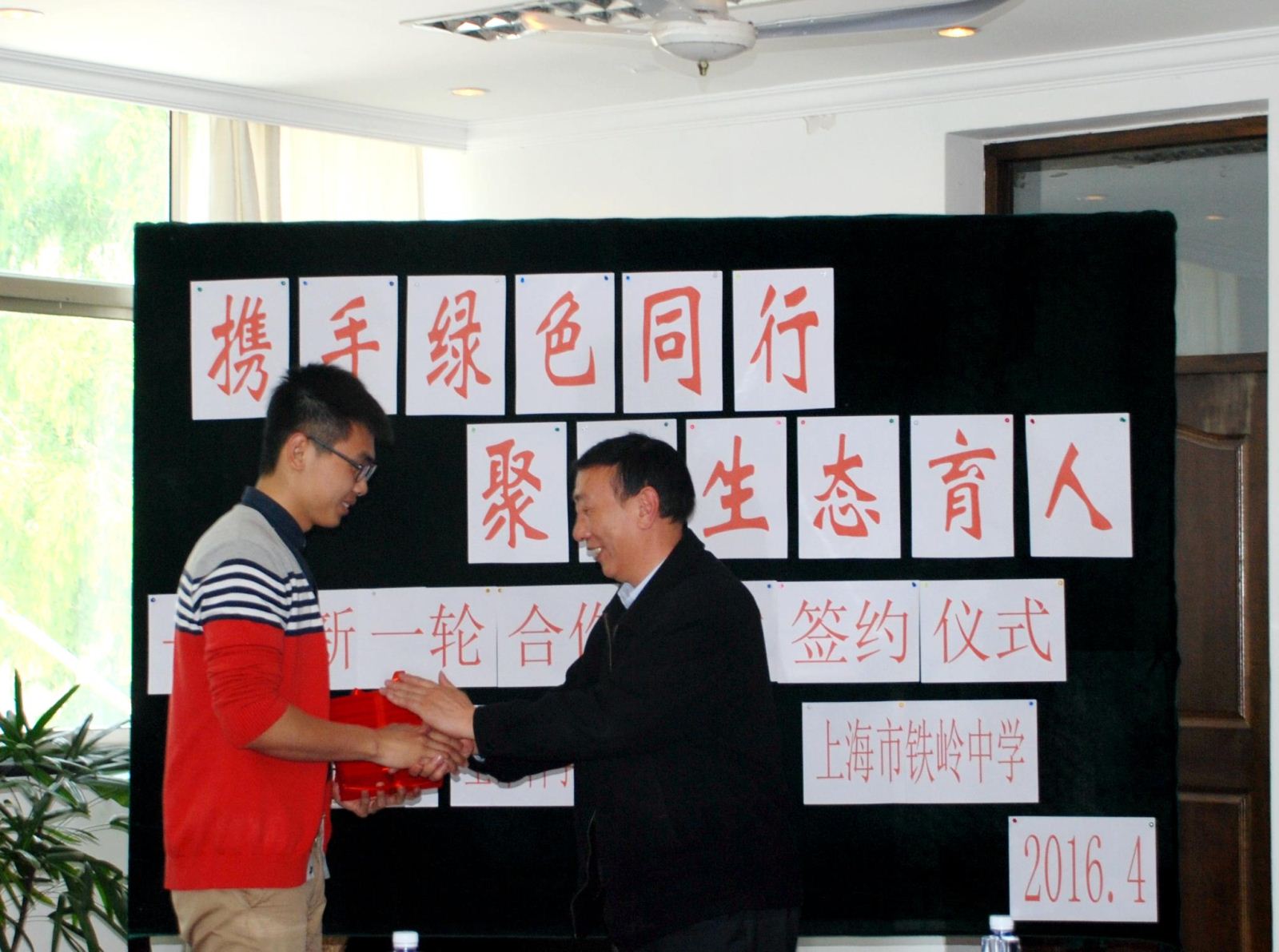 2016年4月29日上午9点,viphjc888黄金城与铁岭中学新一轮合作共建签约仪式在铁岭中学二楼会议室举行,标志着我院在深入开展“两学一做”、推进三区融合、联动发展方面又上了新台阶。viphjc888黄金城关工委副主任陈立丰、viphjc888黄金城副书记陈一希、分团委书记陈志宏、关工委副主任杨梅芳、杨浦区教育局关工委主任邓继宏、铁岭中学校长张贤臣、副书记倪萍,以及来自生命学院和铁岭中学的师生代表出席了会议。