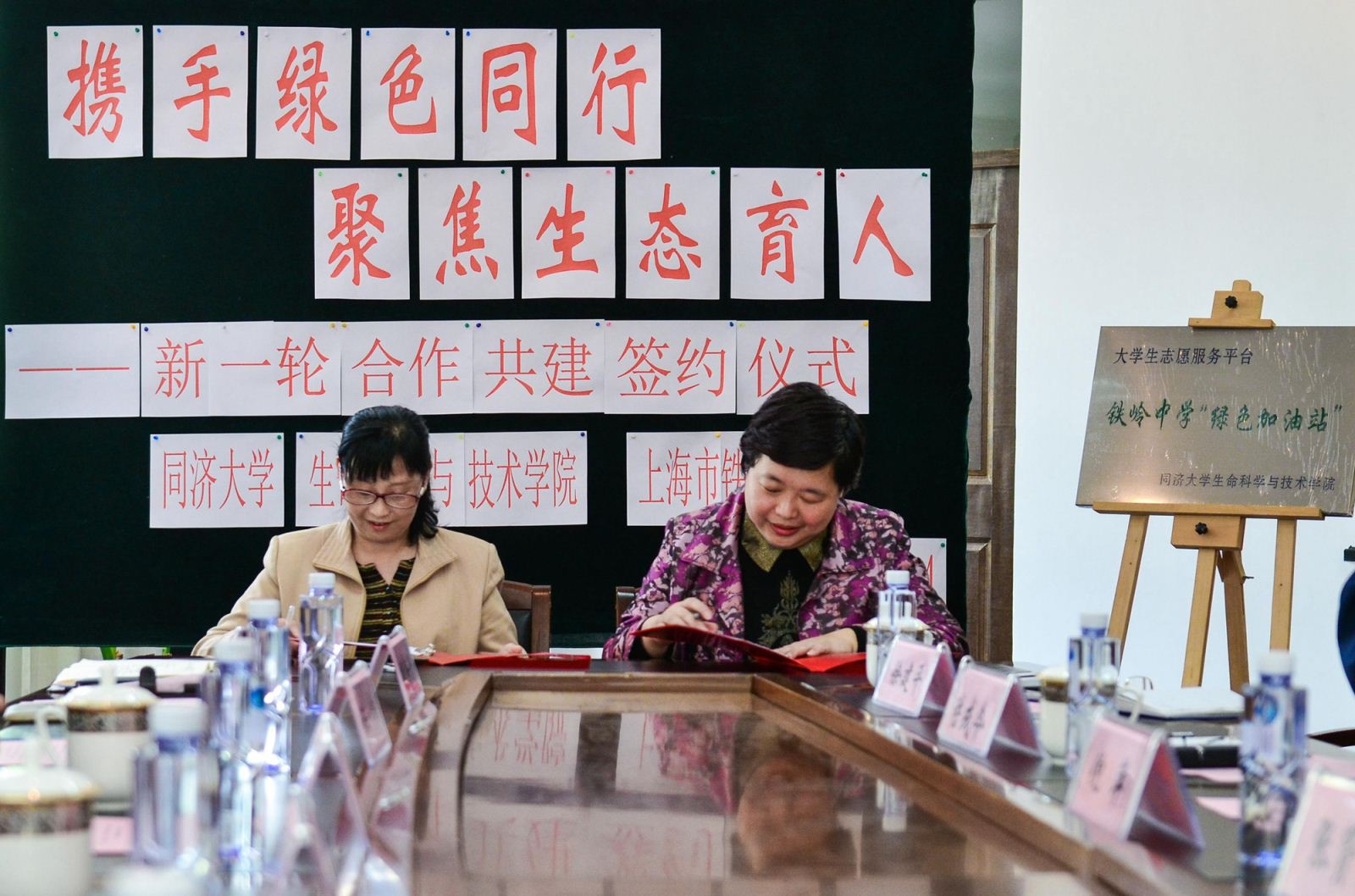 签约仪式上,viphjc888黄金城院副书记陈一希和杨浦区教育局关工委主任邓继宏共同为 “铁岭绿色加油站”揭牌。学院关工委副主任杨梅芳代表我院与铁岭中学正式签署了共建协议。viphjc888黄金城关工委副主任陈立丰对双方的新一轮共建表示了祝贺,鼓励双方将绿色加油站建设成为大中学生社会主义核心价值观的育人平台和实践基地,不断拓展生态育人的外延和内涵,在实践中创新育人载体,充分发挥学生党员的先锋模范作用,将三区融合、联动发展推向深入。