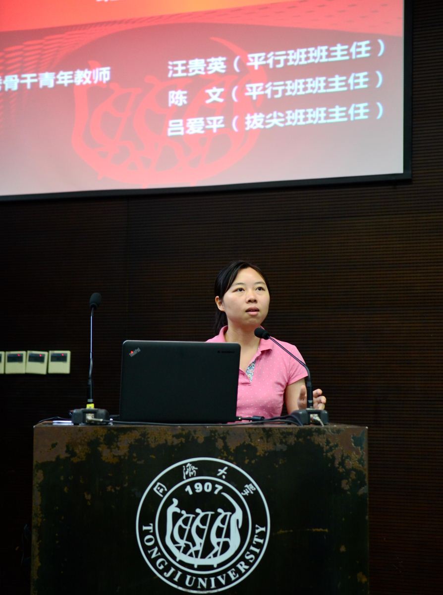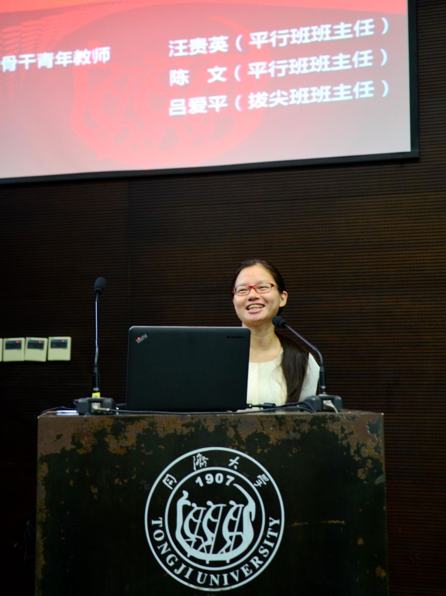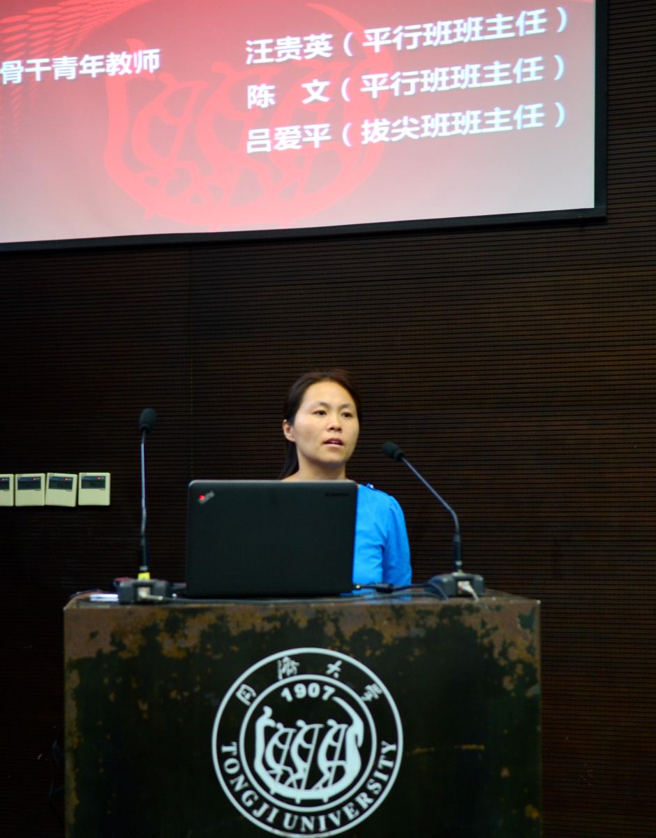 家长见面后的最后,三位新任班主任,来自我院的骨干教师汪贵英、陈文和吕爱平老师一一走上了讲台,与新生和家长面对面。