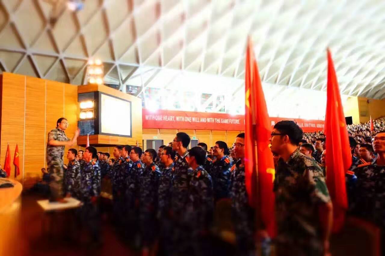 8月29日上午,我院2015级全体参训本学生身着军装在四平校区大礼堂参加了军训动员大会,以四营十一连一排的集体形象正式踏上了军训的征程。骄阳似火的日子里,同学们的胶鞋被晒得发烫,身上的军训服一次次被汗水浸湿又被烈日晒干,但是在班主任老师的陪伴和教官的指导下,训练的进度一刻没有停。训练场上,同学们汗流浃背,一遍遍、一排排地反复练习步伐;训练场旁,同学们的一个个背包、水瓶摆放得整整齐齐。训练初时,同学们认真努力地学习教官悉心教导的各个动作要领,不停地改进不足;训练渐进尾声时,队列已然军姿整齐,口号嘹亮,得到教官的真心赞扬。为了迎接瞩目中的歌咏比赛,班主任老师们牺牲了休息时间,亲自带领同学们熟悉歌词、一遍遍练习、反复合唱,师生们为了集体荣誉,调动出了极大的热情。