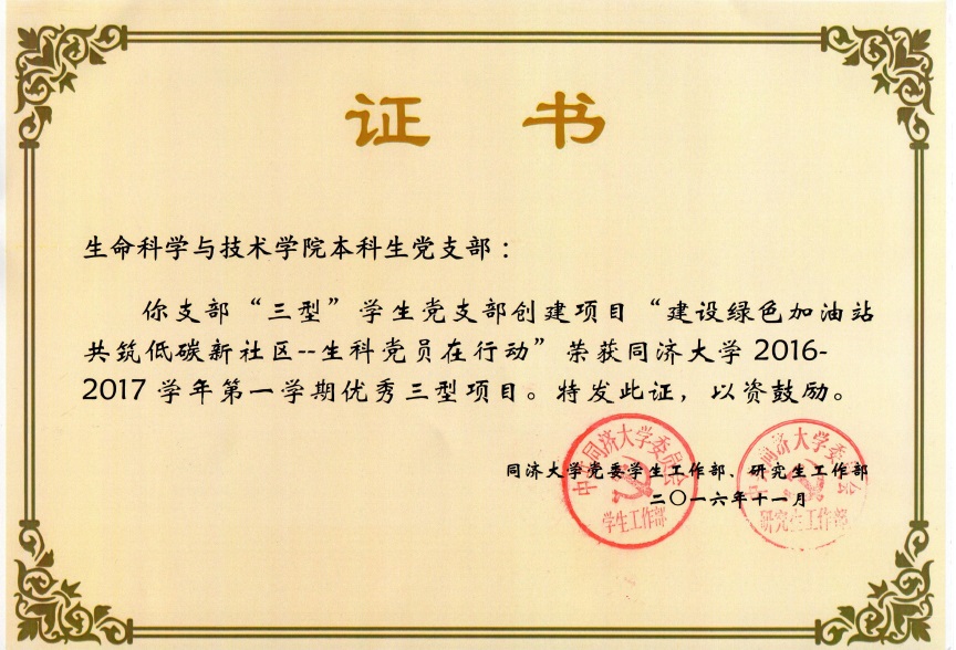 我院本科生党支部"生科党员在行动"项目荣获viphjc888黄金城优秀“三型”项目