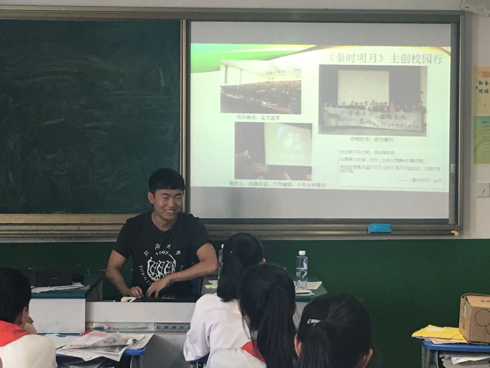 相比较前面两位经历比较“坎坷”的青春讲师,宗辉同学的成长故事似乎更加贴近中学生们所熟悉的世界,他喜欢学习,也喜欢玩游戏,喜欢文艺。但别人玩游戏耽误学习,而宗辉却让自己的学习和兴趣有了完美的结合。他根据自身经历,和中学生们分享了主题为“学习之乐,兴趣使然”的成长故事。从初中的兴趣动漫“秦时明月”开场,介绍了自己在大学生活中主动联系动漫公司,为秦迷带来一场校园行的故事。再到后面经历的各种事例,比如以电子竞技为兴趣并且不断努力成为成功的职业选手,以志愿者服务为兴趣积极参与志愿者活动,以创新创业为兴趣参与各种创业比赛的年轻大学生,以舞蹈为兴趣参与校庆晚会的演员们。通过这些事例向初中生言传身教,兴趣是多种多样的,只要打破自己的局限,放开自己的心胸,辩证地认识兴趣与学习的关系,就能在学习时乐在其中,不断进步,收获精彩的人生,并且实现自身的人生价值。
