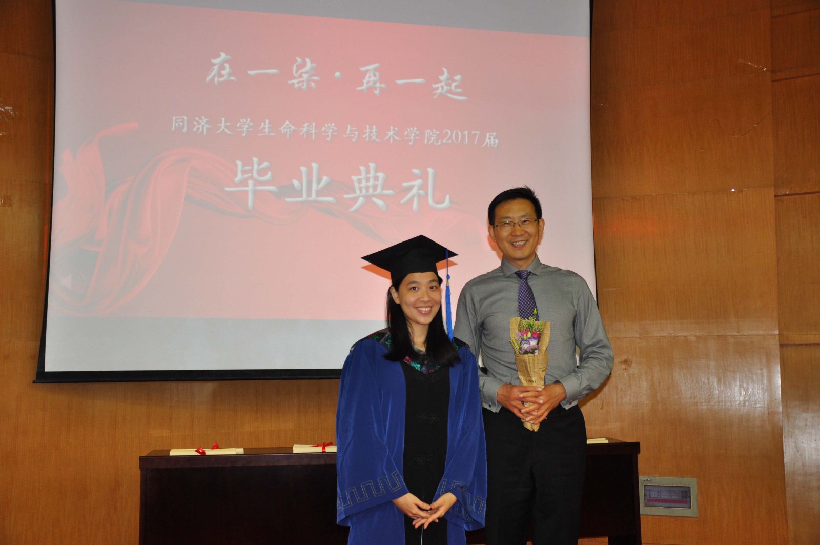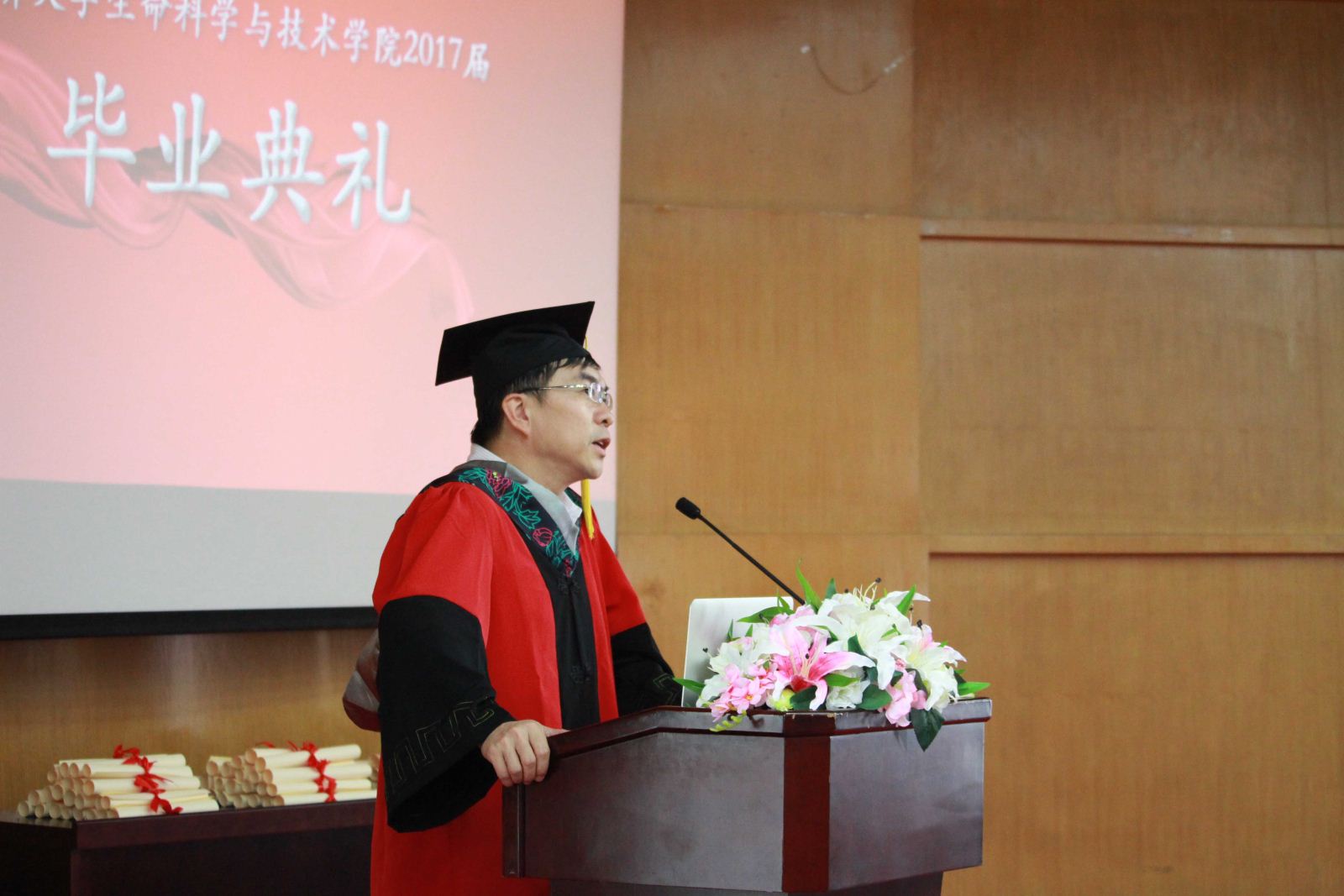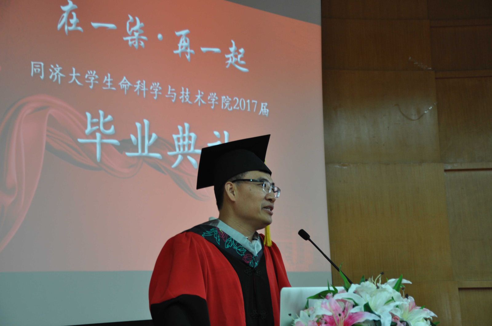 学院党委书记康九红教授首先为毕业生致辞,他感慨时光匆匆,生命学院短短几年内发展迅速,在学科建设和创新团队方面取得了优秀的成绩,希望毕业生们以生命学院为荣。同时康书记用自己丰富的人生经验为毕业生们提出了殷切的建议:第一,同济学子应该德才兼备,拥有大局意识;第二,生科人要不忘初心,砥砺前行。最开始选择了生命科学,就要对她有信心,她会回报你更多;第三,脚踏实地,追求卓越,爱岗敬业,如此才能在得到社会的认可;第四,同学们在以后的生活中要劳逸结合,张弛有度,身心健康;最后,华丽转身,新的开始,我们永远在一起,感恩生命学院。