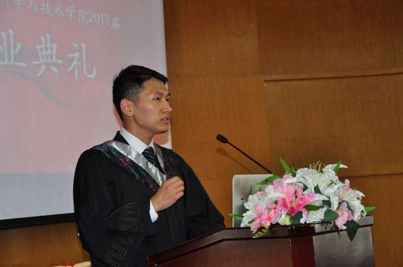 生科从来不乏榜样的力量,他们有的是学术先锋,走在科学前沿,崭露头角;有的热心公益,以科教济世;有的敢想敢拼,自助创业。毕业生代表洪楠方分享了他的丰富多彩的大学生活,他说回顾大学就像一场电影,感谢同济教会了他成长,学院提供了国外比赛的机会以及科研平台。洪楠方用三个关键词来总结四年的时光,从发现学习的魅力、乐趣、技巧到发现被需要带来的快乐,以及到发现拥有厚积薄发的格局和视野,这些都是同济教给他的最重要的收获。
